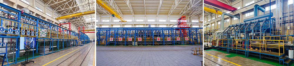 表面技術中心占地5.2公頃,規(guī)劃面積25000m2,目前已經(jīng)建成車間總面積10000m2。電鍍產(chǎn)線以國內(nèi)領先標準設計,設備選用先進的電鍍設備。其中電鍍產(chǎn)線一期工程完成了鍍鉻A、B、C三條生產(chǎn)線和廢氣、污水處理等環(huán)保配套設施的建設和驗收。鍍件的最大直徑可達到590mm,最大長度可達7500mm。它可實現(xiàn)電鍍生產(chǎn)自動化,污染物處理自動化,排放監(jiān)控自動化功能。是業(yè)內(nèi)規(guī)模較大、技術最先進的表面電鍍生產(chǎn)線。